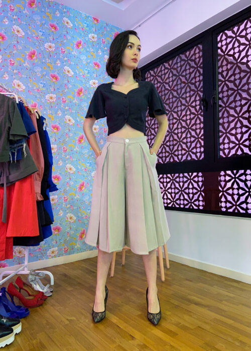SHETILA QUEEN ANNE NECKLINE CROP TOP OLIVE GREEN